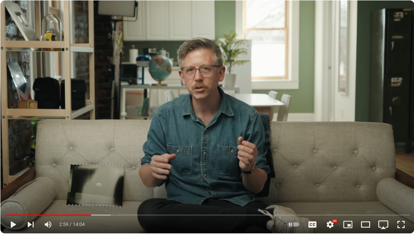 With practice he’s consistently improved his shooting, lighting, editing, animation and sound design over the nine years he’s been producing videos – a testament to the power of sticking with it. His videos’ production quality benefits from a zeal to get better. “I was so upset about my graphics and how they looked,” he said during a behind-the-scenes piece about improving his on-screen text and animations. So, during the two hours a day of naptime during the pandemic he had during parental leave he delved into making some templates and a redesign.