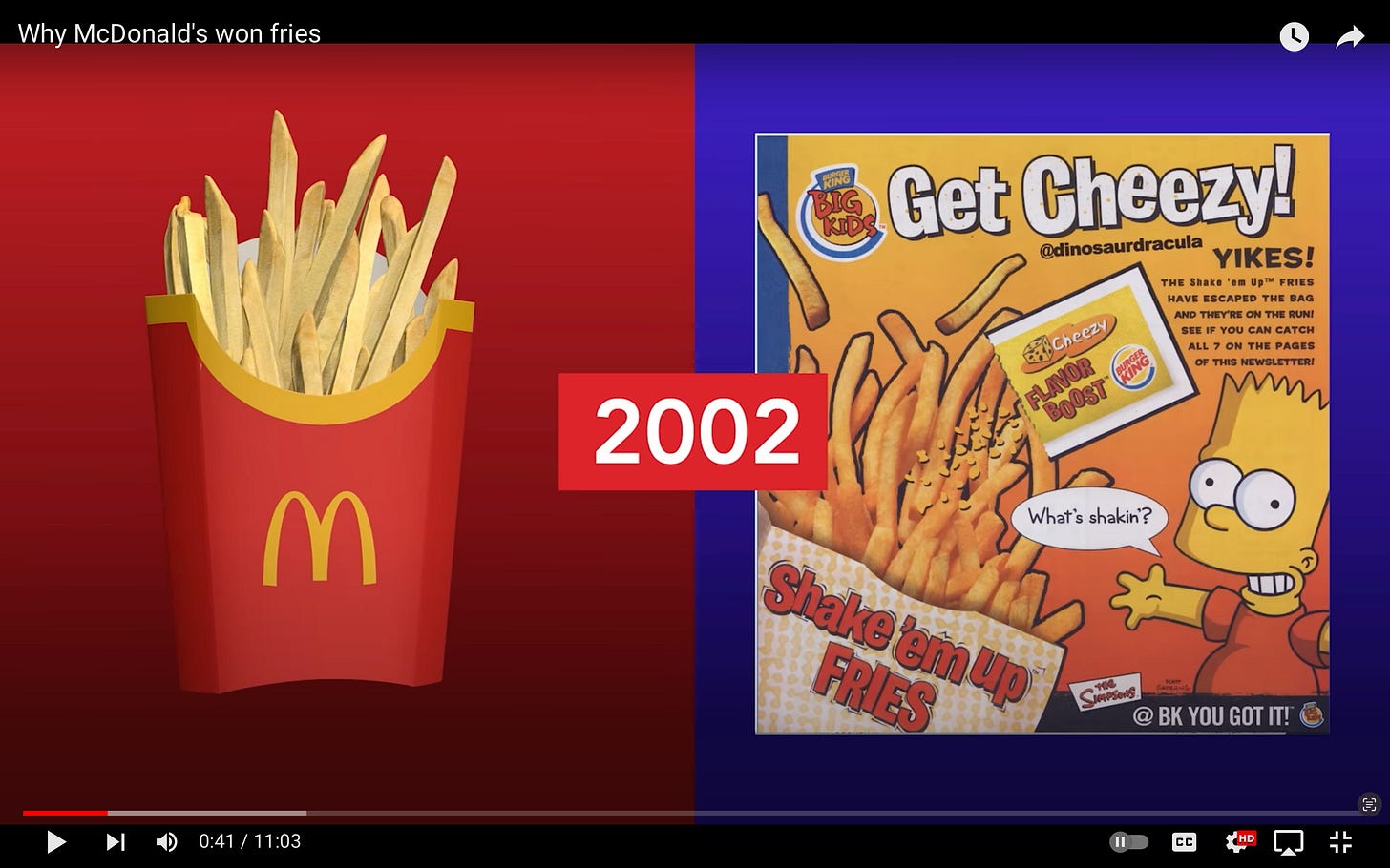 In a recent video on French fries, Edwards went to the trouble of animating a serving of fries with 3D software just to make a shot comparing McDonalds and Burger King more interesting.